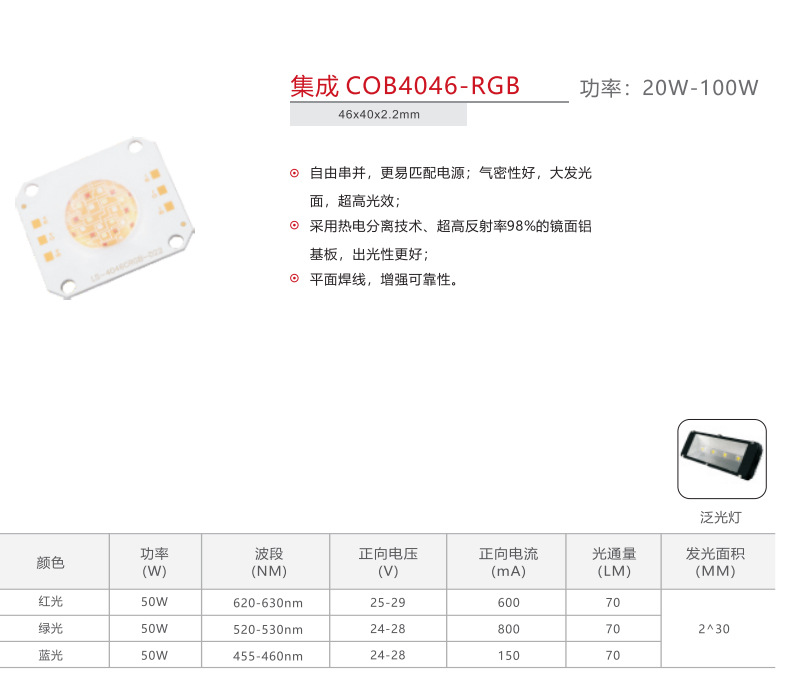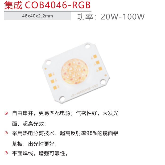 60WRGB三合一COB燈珠紅綠藍三色燈珠RGB燈珠4046RGB燈珠光源