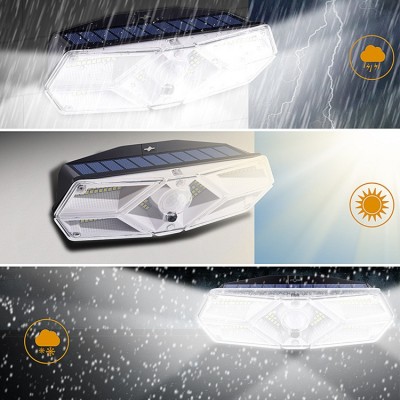 跨境現貨104LED太陽能壁燈 戶外防水太陽能六面發光高亮光控壁燈