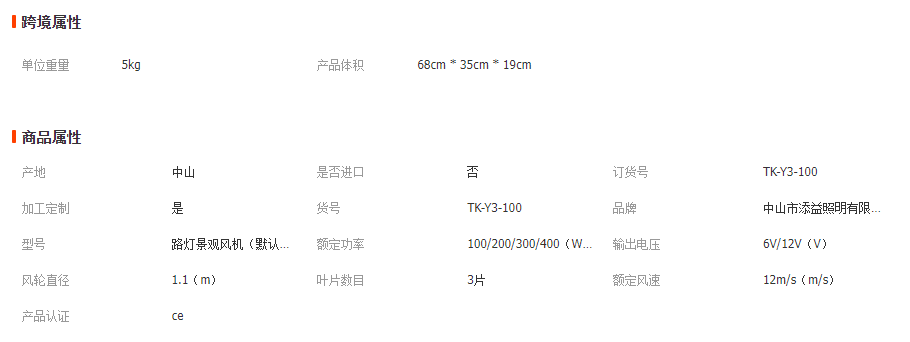 100W小型風力發電機風光互補路燈水平軸路燈風機6V/12V