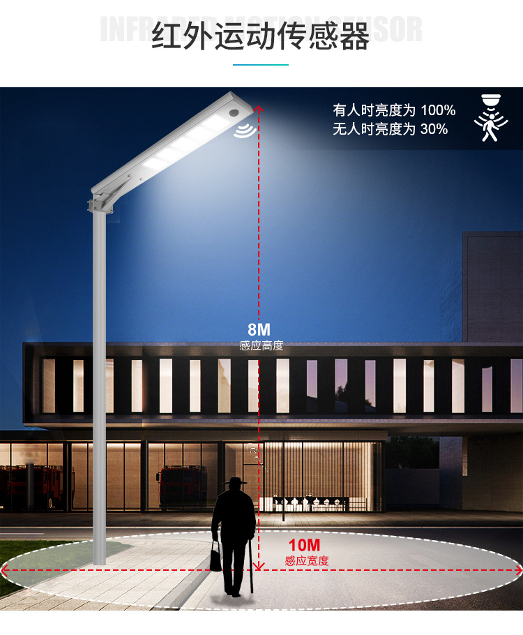 戶外大功率太陽能路燈市政道路工程級一體化太陽能感應路燈頭廠家