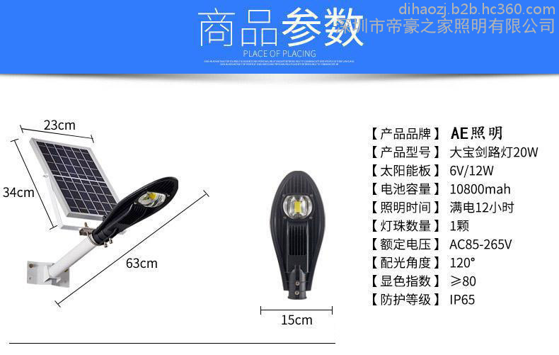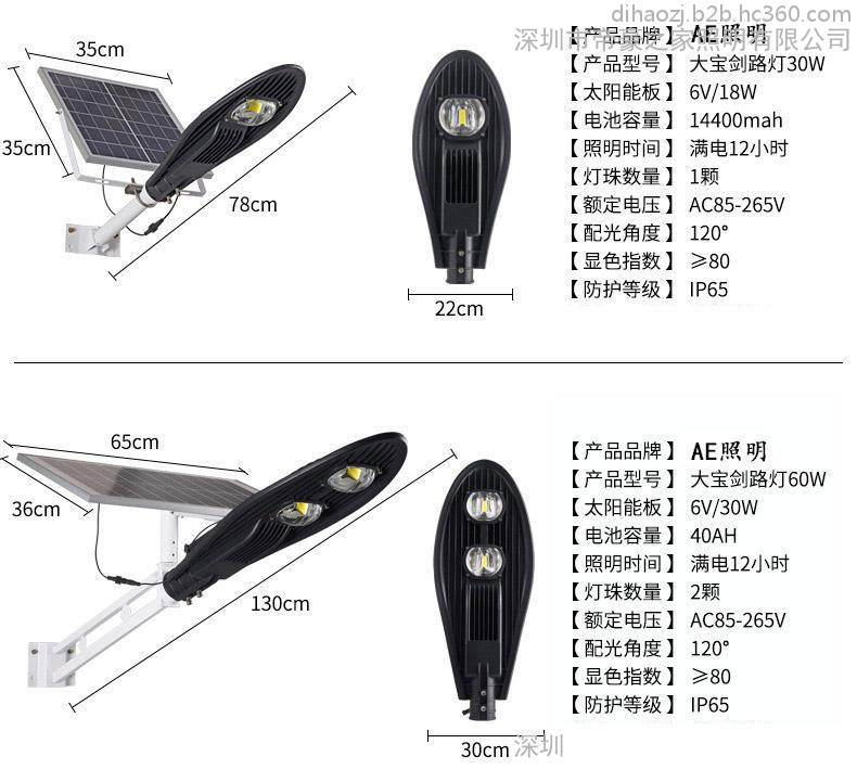 AE照明AE-TYN-02 太陽能路燈太陽能路燈戶外家用壁燈室外太陽能燈別墅公園廣場投光燈新農(nóng)村一體化LED防水路燈