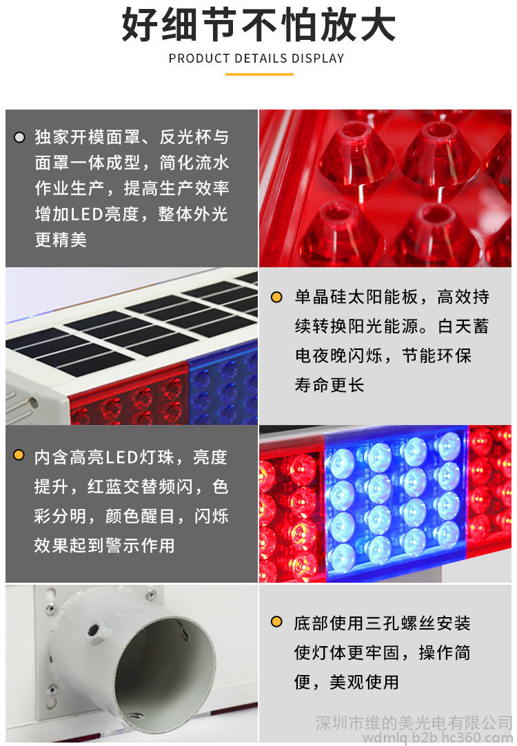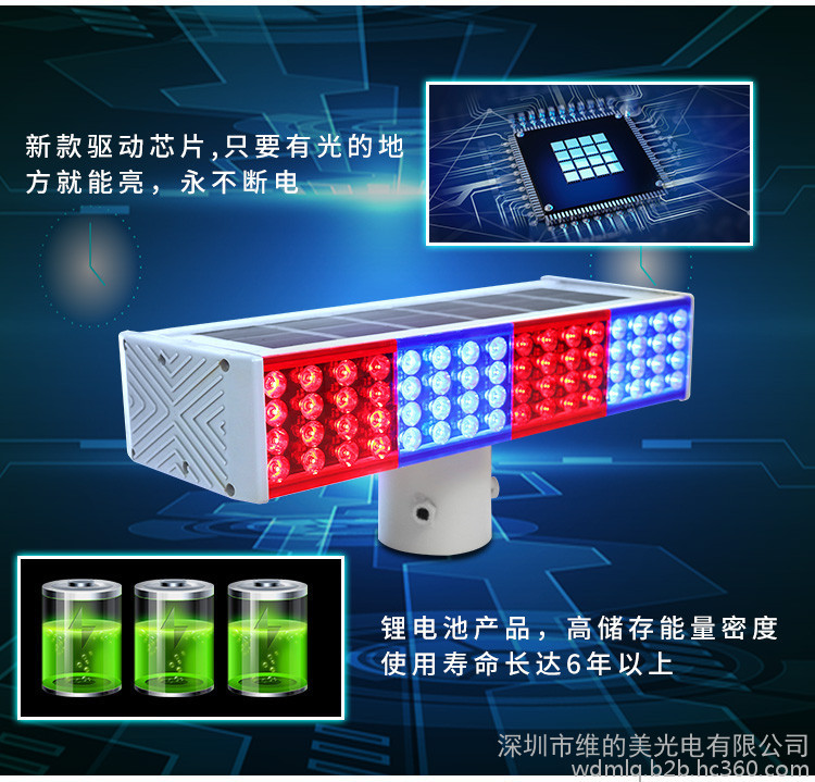 維的美 太陽(yáng)能爆閃燈 施工紅藍(lán)頻閃警示燈 高速公路太陽(yáng)能爆閃燈