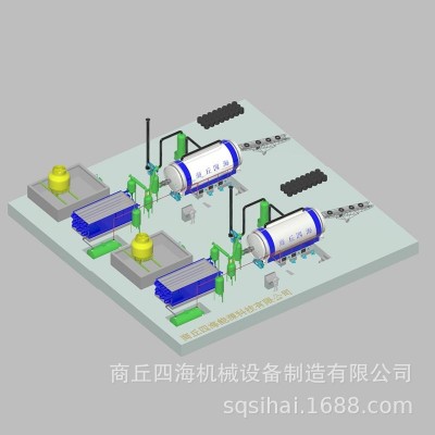 ⑵商丘四海能源科技有限公司與多所大學和科研單位合作,成功的研制開發了目前國內外最經濟實用的廢橡膠輪胎回收利用技術---常壓臥式旋轉式廢橡膠輪胎熱裂解SHLJ--××系列成套設備。