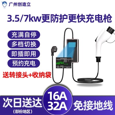 廠家新能源電動(dòng)汽車(chē)便攜式充電槍7KW32A家用隨車(chē)充3.5KW16A 免接地 汽車(chē)充電樁 便攜式充電樁 新能源充電樁
